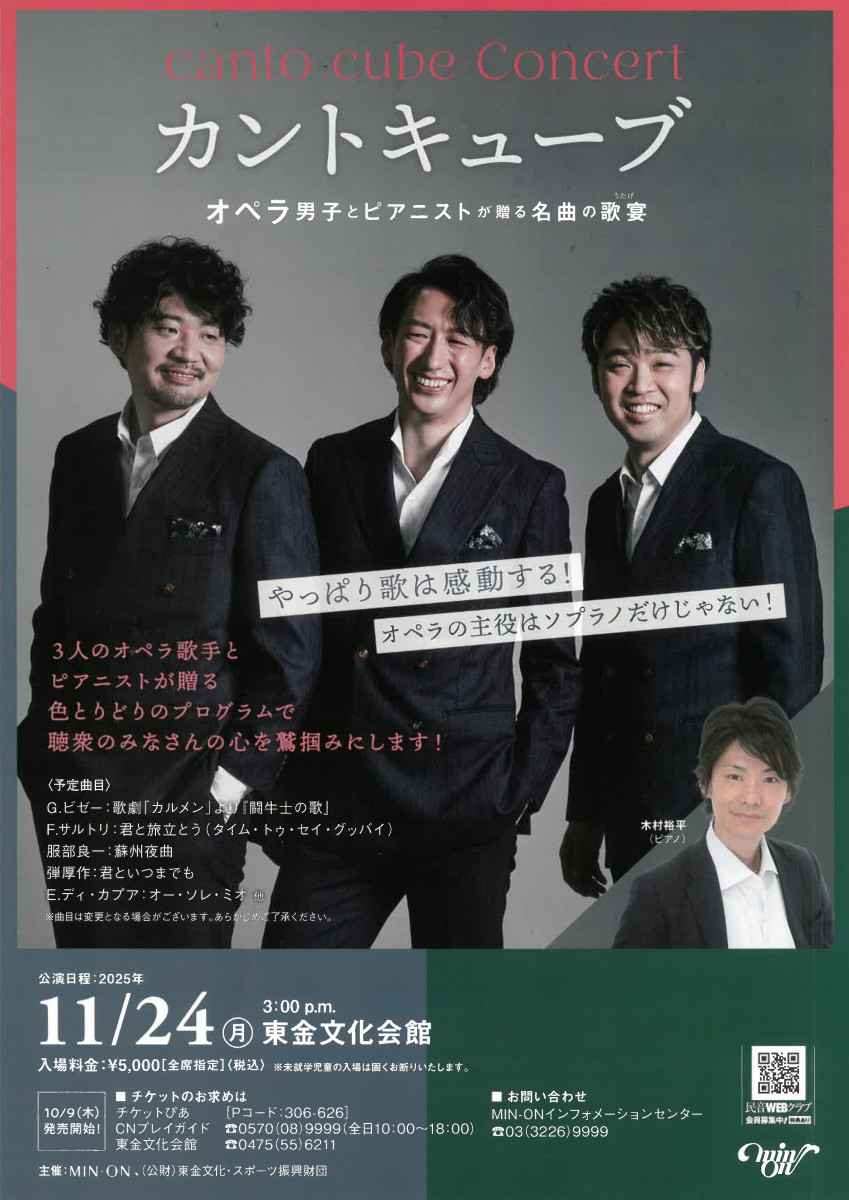 カントキューブ:隠岐速人(テノール)、高橋洋介(バリトン)、後藤春馬(バス・バリトン)、ピアノ/木村裕平