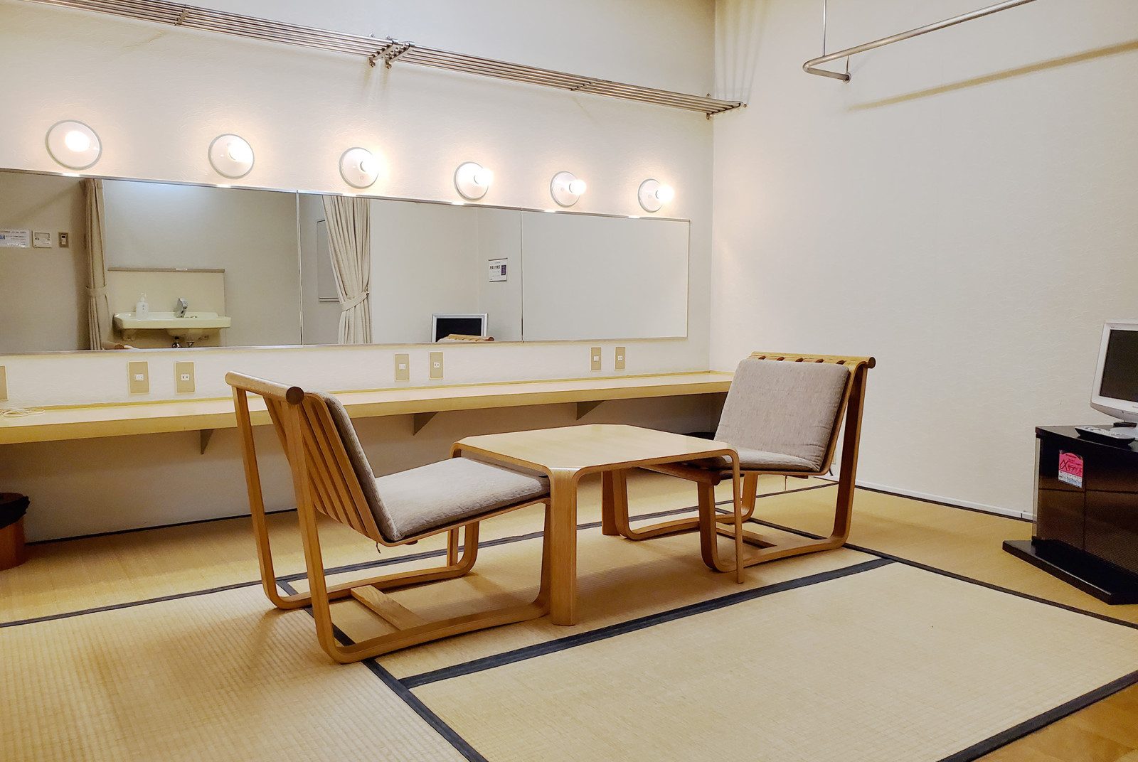 | 楽屋 | (6)/ 洋室37㎡(間仕切り可能) (7)/ 和室6畳 ※フリーWi-Fi有 |